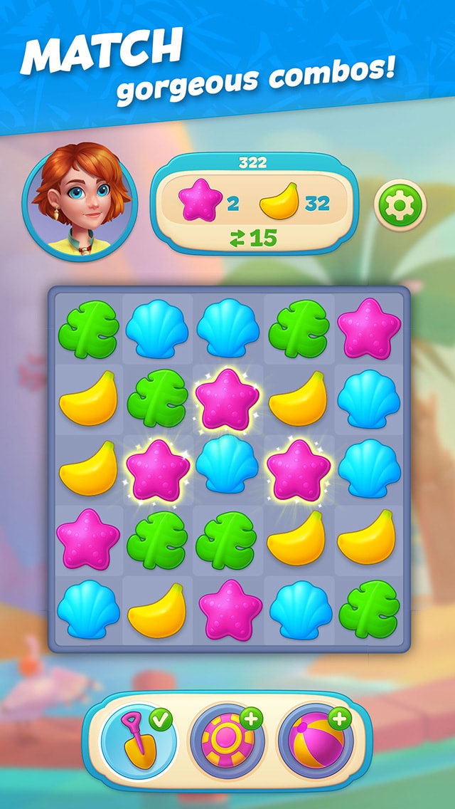 - PLAY through dynamic match-3 levels and explore picturesque locations around the paradise island