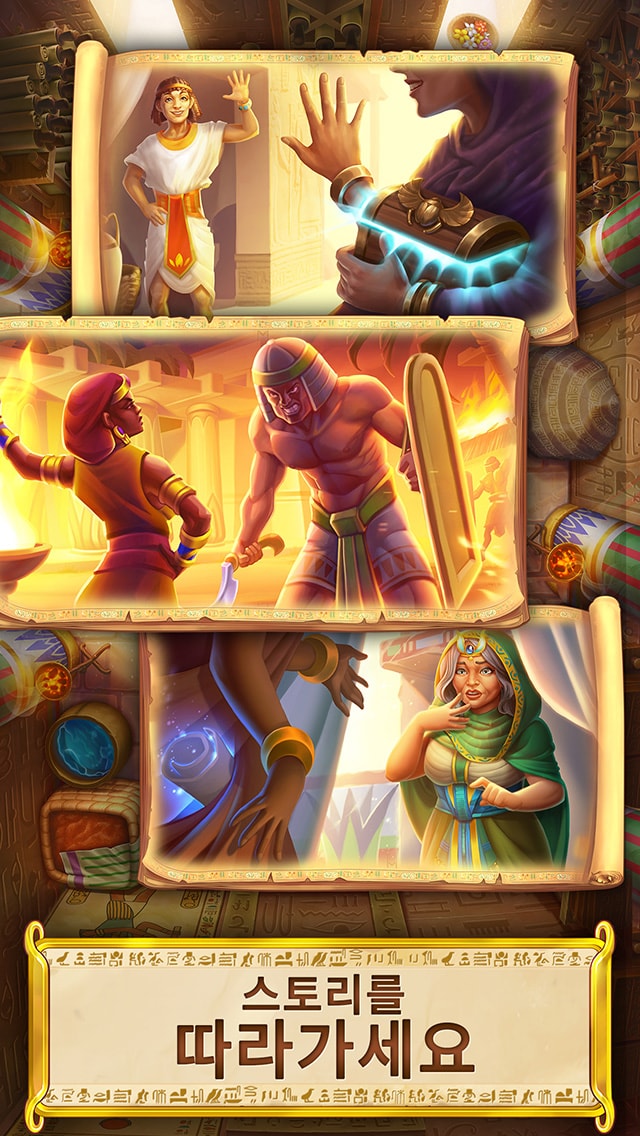 수백 가지 매치-3 퍼즐 레벨을 통과하며 보석을 서로 바꾸고 짝을 맞추어 자원을 모으고 파라오를 도와 폐허가 된 문명을 되살리세요. 웅장한 피라미드, 신전, 궁궐과 오벨리스크까지 모두 만나볼 수 있어요!