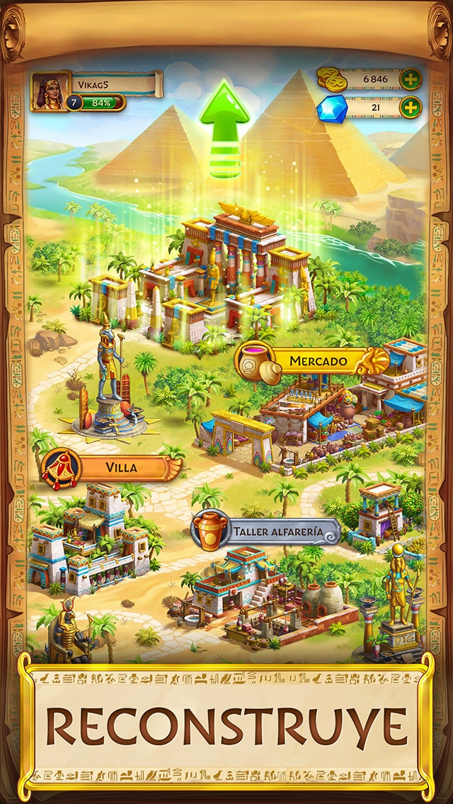 ¡Intercambia y combina gemas en cientos de niveles de puzles de combina 3 para reunir recursos y ayudar al faraón a restaurar una civilización destruida con sus majestuosas pirámides, templos, palacios y obeliscos!