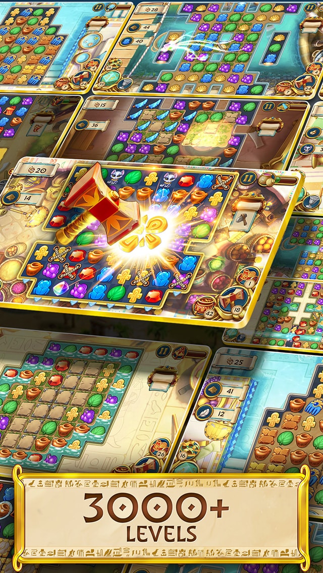 Uncover Ancient Egypt's legend by solving match-3 puzzles across thousands of unique levels. Each completed quest brings you closer to helping the Pharaoh rebuild a once-glorious civilization, complete with temples, palaces, and legendary monuments.