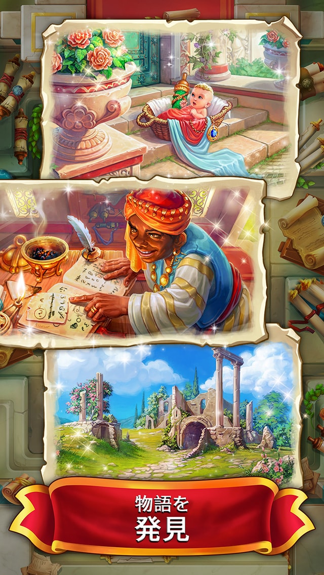 都市建設とタイルマッチングの壮大かつユニークなコンビネーションに、ハラハラさせられる展開と地中海文化、そして古代ローマの色鮮やかな雰囲気が沢山詰まったストーリーラインが融合したゲームの登場です。ローマ帝国の端の方に位置する、問題を抱えた居住区の長官に任命されたあなた。前任者のカシウスの裏切りによって窮地に立たされたコミュニティに活気を取り戻そうと奮闘する住民たちを助けなければなりません。伝説に残る立派な居住区を再建し、カシウスの邪悪な陰謀を阻止し、住民たちに再び幸運をもたらすのです!繁栄を目指しながら、ピンチから救ってくれる「シャッフル」ブースターや、複数のタイルを爆破してくれる「ファイヤーポット」ブースターなどの特別なツールや実績を集めましょう。