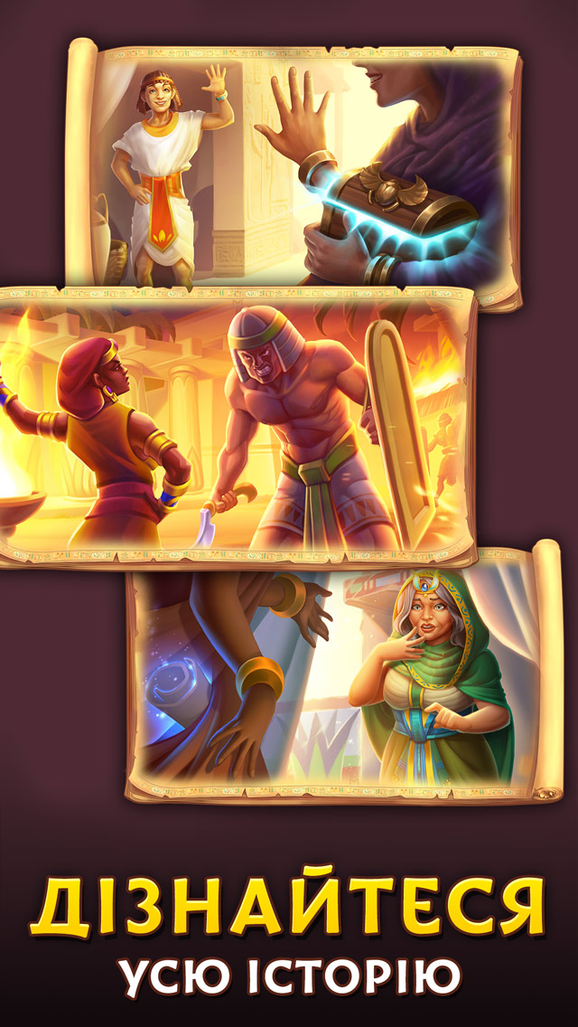 Новий пасьянс «Маджонг» — це унікальне епічне поєднання будівництва міста та класичного поєднання плиток, пов’язаних разом сюжетною лінією, повною придворних інтриг, хитрих планів та історичних подій, гідних Нефертіті. І все це відбувається в барвистій та яскравій атмосфері Стародавнього Єгипту. Ви — амбітний архітектор у третьому поколінні, який шукає свою сестру після таємничого зникнення. Допоможіть рішучим громадянам відродити громаду після нищівних атак божевільного Ірсу та його хитрої свити. Встановіть зв’язок між вашою родиною та магічними старожитностями, щоб коронувати гідну людину. Перетворіть родючий ґрунт, знайдіть зниклу сестру та тримайте потужний артефакт подалі від злих сил, щоб переконатися, що доля знову прихилить ваших поселенців! На шляху до процвітання збирайте досягнення та отримуйте спеціальні інструменти, такі як бустер «Кубики» (який виручає вас із складної ситуації), бустер «Жаровня» (який підриває кілька пар плиток) і багато інших інноваційних функцій, які можуть покращити гру!