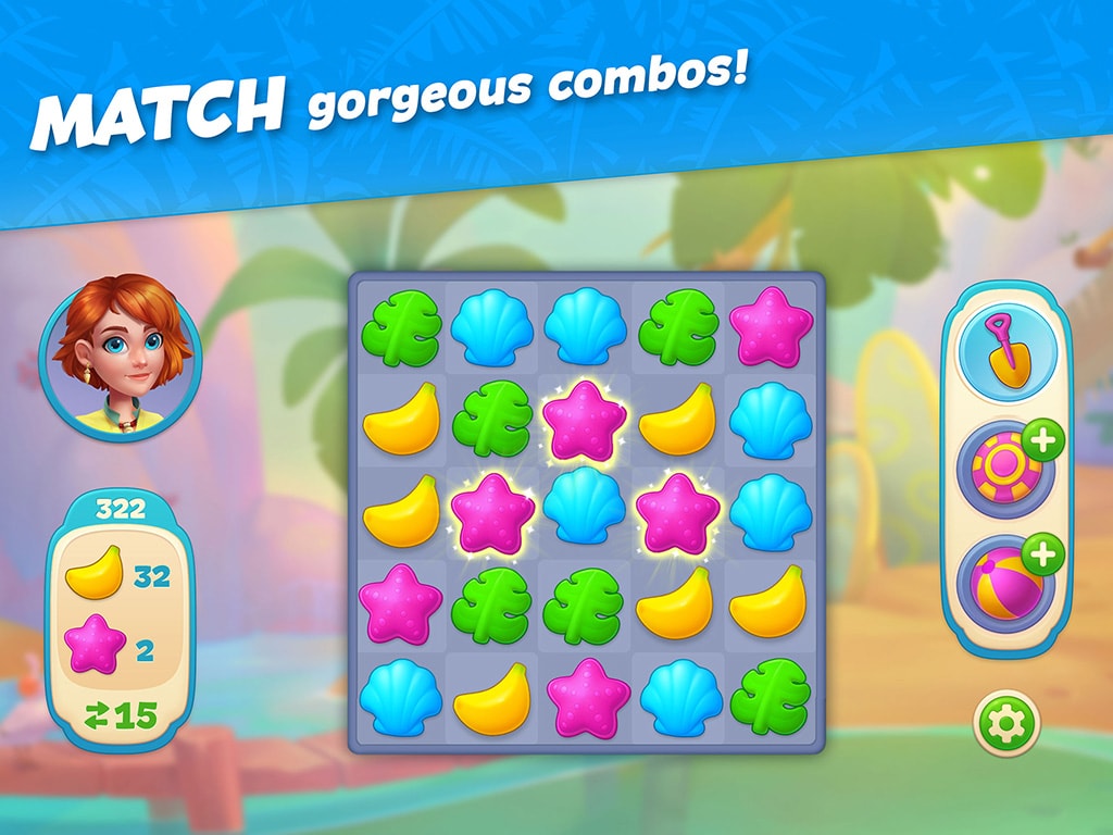 - PLAY through dynamic match-3 levels and explore picturesque locations around the paradise island