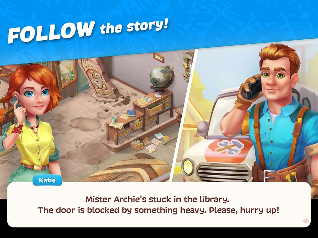 Welcome to the tropical island where young Katie Lockwood has returned to her family’s beautiful yet damaged mansion! She needs your help to rebuild it after a hurricane and bring it back to its former glory!