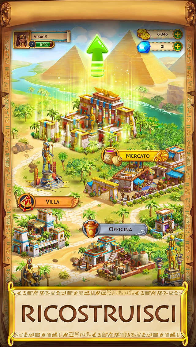 Sposta e abbina gemme su centinaia di livelli con rompicapi match-3 per raccogliere risorse e aiutare il faraone a ripristinare una civiltà in rovina con i suoi maestosi templi, piramidi, palazzi e obelischi!