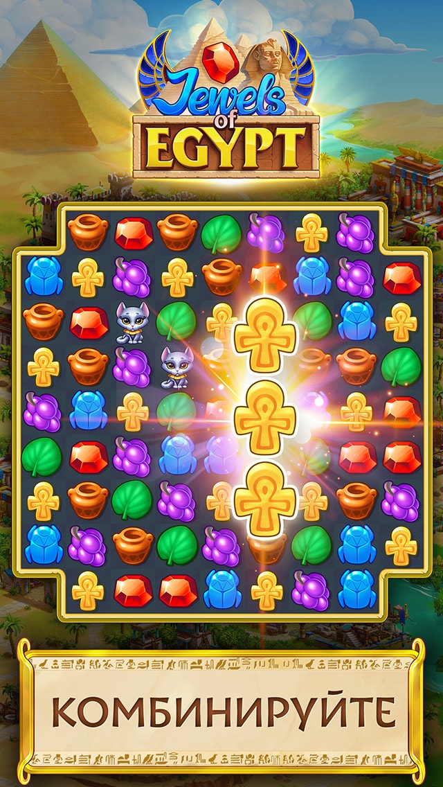 Перенеситесь во времена Древнего Египта в замечательной бесплатной игре жанра «3 в ряд» Jewels of Egypt®! Поселению в Дельте Нила нужна ваша помощь, чтобы вернуть былую славу времен Нового Царства. Комбинируйте сокровища на тысячах уровней «3 в ряд», решайте непростые головоломки и превратите эту опустошенную, но некогда прекрасную местность в жемчужину Нила!