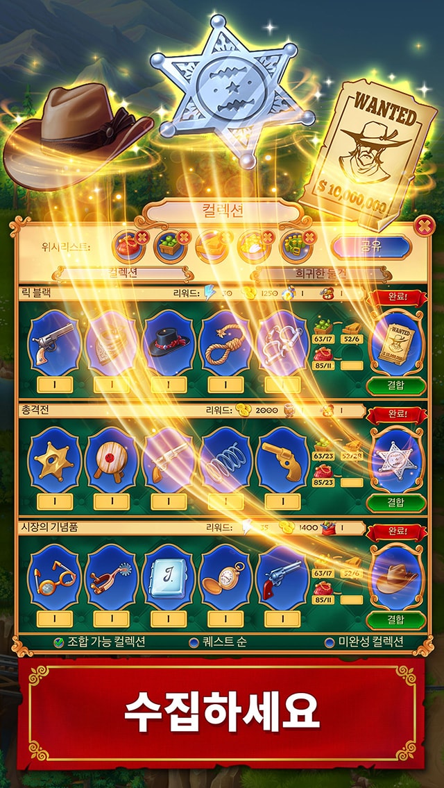 이 게임은 도시 건설과 매치-3의 독특하고 장대한 조합으로, 반전이 넘치는 스토리라인에 황량한 서부를 휘어잡던 자유로운 영혼, 팍팍한 현실까지 더한 특별한 장르입니다. 플레이어는 유능한 건설업자로 옛날 서부 시대의 말썽 많은 전초 기지인 콜린스 타운에서 낸 광고를 보고 이곳을 찾아왔습니다. 버틀러 갱의 습격으로 쑥대밭이 된 지역 사회를 다시 살려보겠다고 굳게 다짐한 시민들을 도와주세요. 버틀러 갱은 부패한 거물 리차드 피어스가 금전적으로 지원하고 있다는 소문이 있습니다. 황량한 서부에서 하나의 전설로 남을 만한 인상적인 도시를 재건하고, 콜린스 타운의 신임 시장으로 부임하여 무법자들의 사악한 계략을 저지하세요. 행운의 여신은 시민들의 편이라는 것을 다시 한번 증명해주세요!