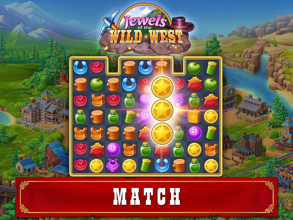Travel back in time in Jewels of the Wild West® and experience the thrilling adventure of being a gunslinger! A fun story set in a struggling frontier town in a faraway and beautiful corner of the Old West, this unforgettable place needs your help to be brought back to its former glory. Play thousands of cowboy-style match-3 levels, meet charismatic characters, follow the suspenseful storyline and help transform this resilient town into the pride of the Wild West!